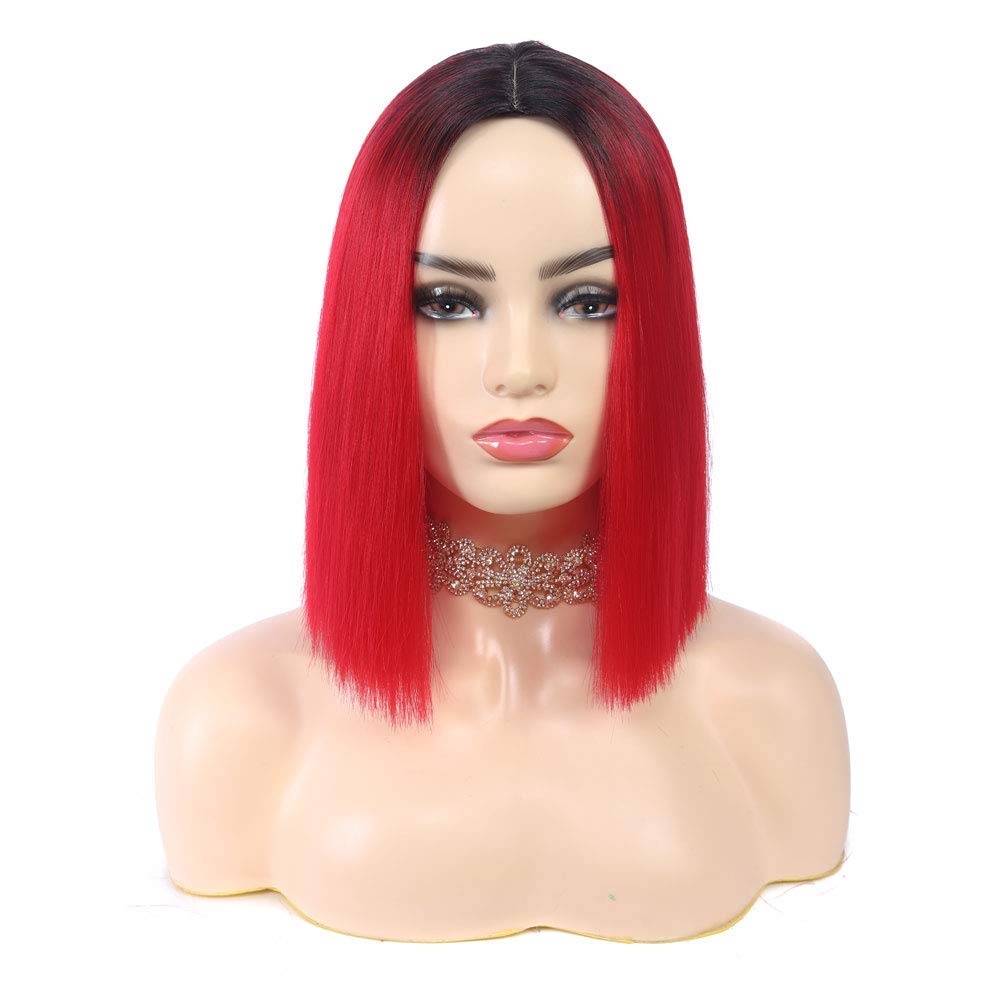 Ombre Pink Short Straight Heat Resistant Synthetic Hair Wig For Black/White Women Cosplay Or Party Bob Wigs